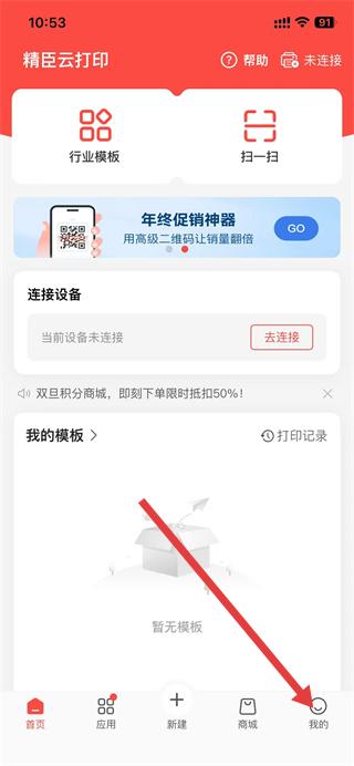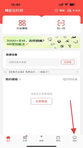 1、打开精臣云打印APP,在首页内点击右下角我的图标。