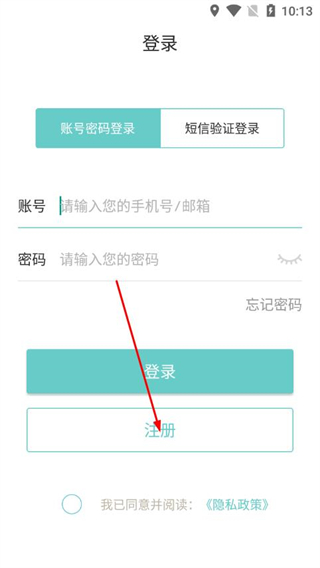 1、打开掌上心电APP的登录页面,点击注册选项。
