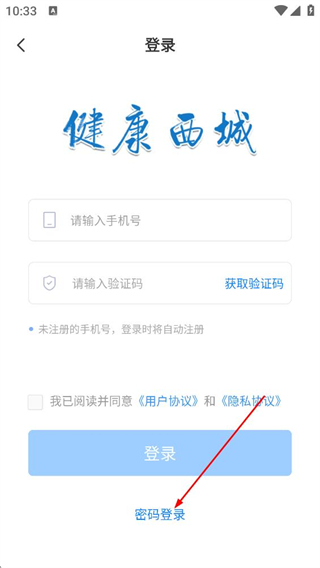 2、在登录页面,点击密码登录选项,切换至密码登录的表单页面。