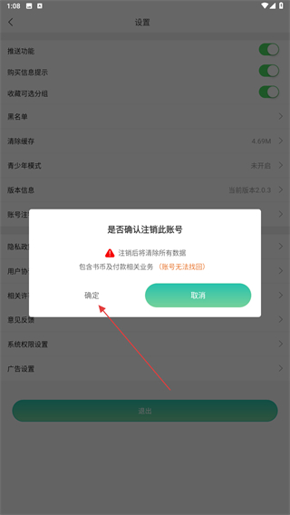 3、进入设置的界面内,找到并点击账号注销的按钮。