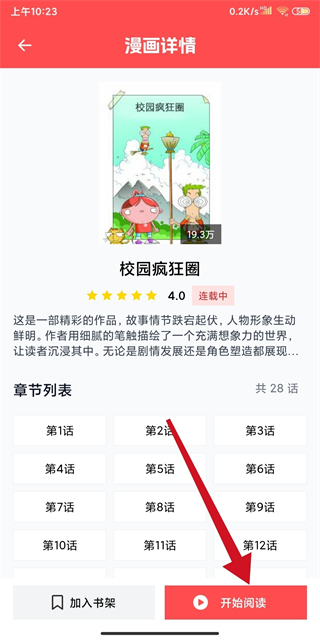3、在漫画详情页点击开始阅读,进入漫画阅读页面。