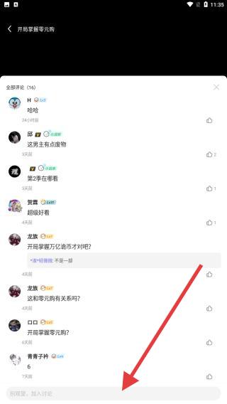3、遇到精彩的剧情可以点击评论区与其他用户一同进行讨论,评论每个角色演戏的内容,也可以全屏拖动观看。