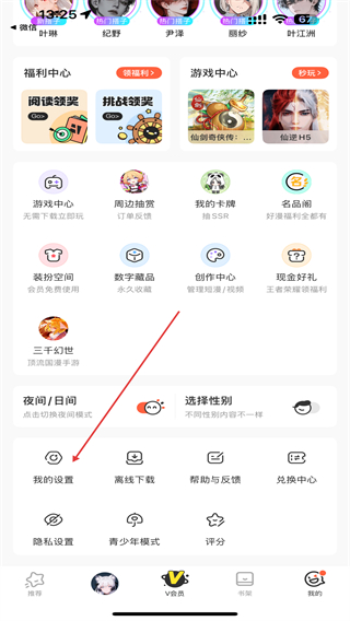 2、在个人主页内,向下拉动找到并点击我的设置的功能按钮。