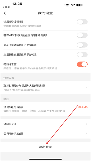 3、进入我的设置界面内,滑动到最底下点击退出登录的按钮。