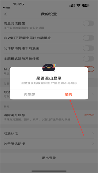4、当界面弹出提示后,再次点击是的按钮即可退出登录。