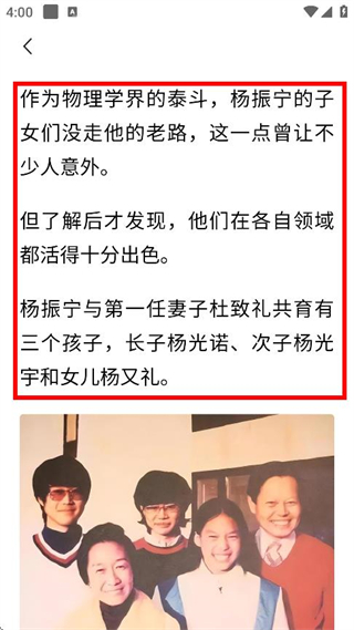 3、最后我们可以在资讯详情页面,可查看关于杨振宁子女等相关内容。