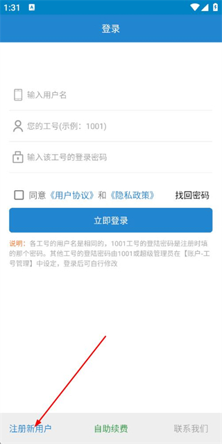 1、在登录页面点击注册新用户选项,进入注册账号页面。