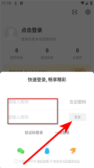 4、在账号密码登录界面,依次填写账号密码,勾选相关协议后,点击登录完成账号登录。