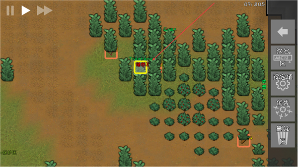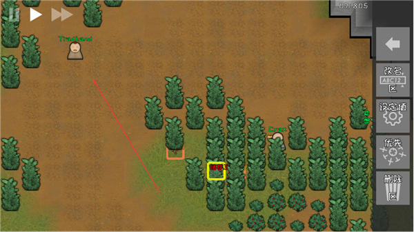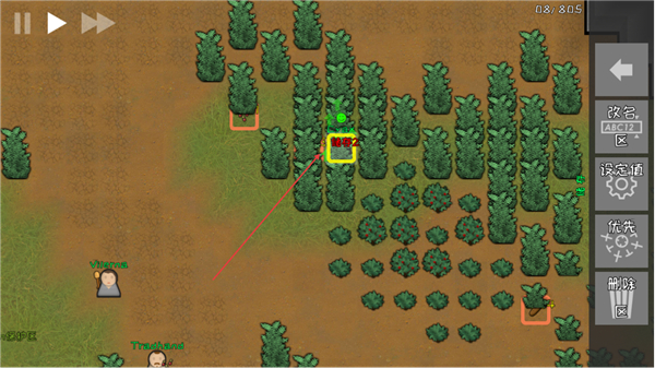 2、选择种植区域内的植物,通过右侧功能栏进行管理如改名,标记关键资源点。