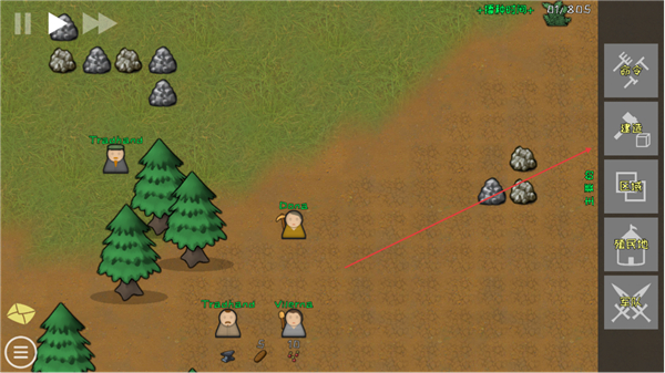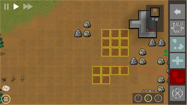 3、选择建筑区域黄色格子,使用资源建造建筑如木墙,拓展殖民地。