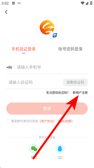 3、在登录页面,点击新用户注册,进入注册信息填写页面。