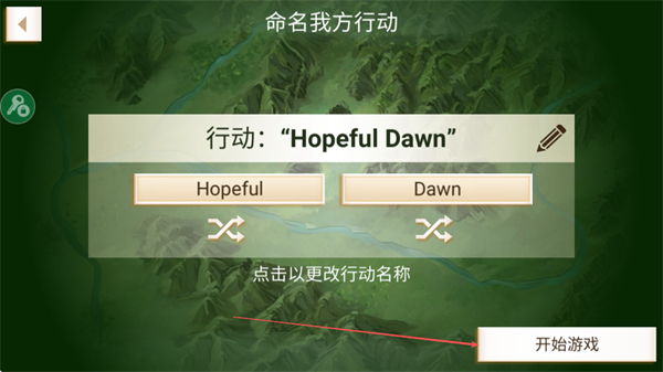 1、在命名界面确认行动名后,点击开始游戏进入游戏主界面。