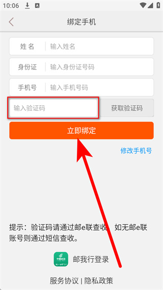 4、将收到的验证码填入验证码框,最后点击立即绑定,完成手机号码的修改。