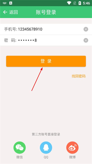 4、在手机号和密码输入框填好信息后,找到页面中的登录按钮,点击该按钮完成登录操作。