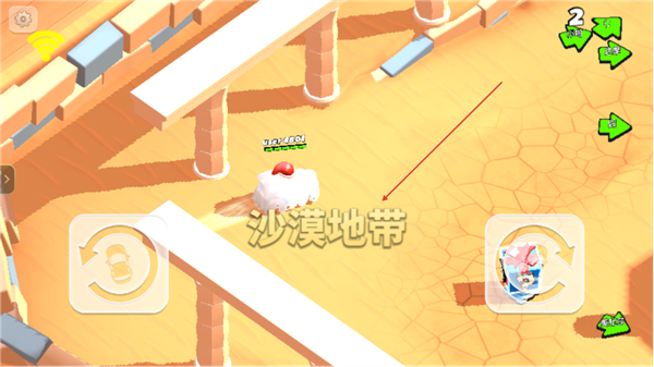 1、进入沙漠地带关卡,操控车辆在场景内移动,熟悉地图布局。