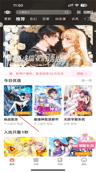2.新人礼包持续放送,来就领30天飒漫会员!