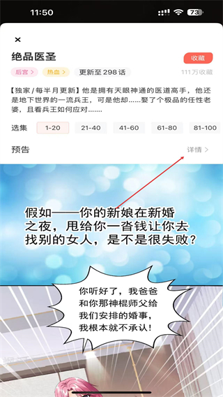 2、进入漫画首页,点击右侧详情的按钮,进入到详情页面。