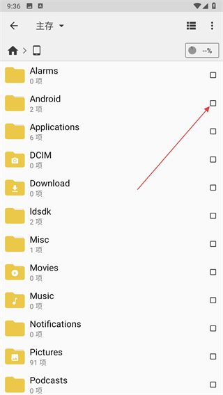 2、在主存页面中,点击需要重命名的文件右侧的方框。