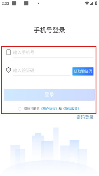 3、在界面中输入手机号,点击获取验证码,输入收到的验证码后勾选协议,点击登录完成操作。