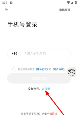 2、在登录页面,点击没有账号去注册选项,可进入账号注册页面。