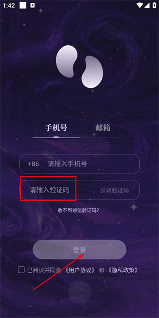 2、在登录页面填写手机号,勾选协议后,点击获取验证码。