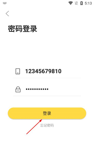 2、在密码登录界面,依次填写对应的手机号和登录密码信息。