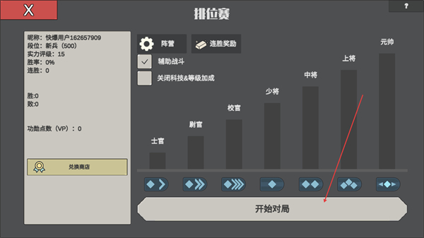 1、在排位赛界面确认设置后,点击开始对局进入战斗。