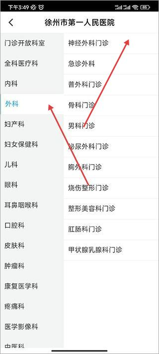 2、在医院列表中,选择目标医院,进入该院科室选择页面。