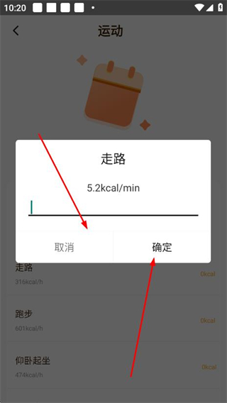 3、在弹窗中确认运动信息,点击确定完成该运动项目的打卡记录。