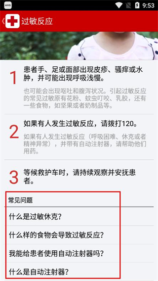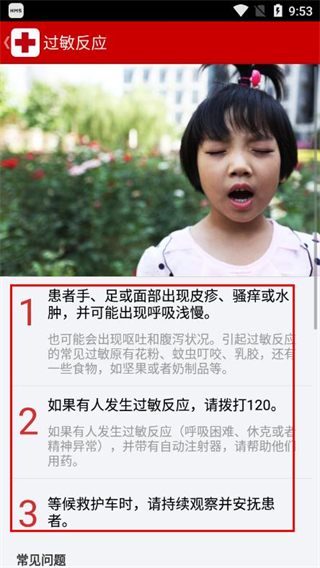 3、可查看常见问题板块,了解该急救场景下的相关知识。