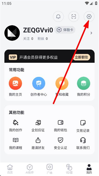 2、进入我的页面后,找到并点击右上角的设置图标。