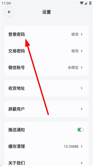 3、进入设置页面,找到并点击上方的登录密码选项。