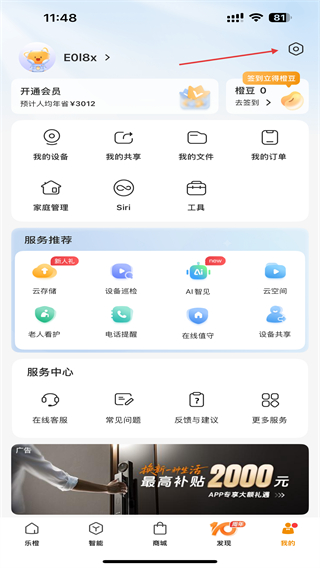 1、启动乐橙监控的APP,在首页右下角我的图标。