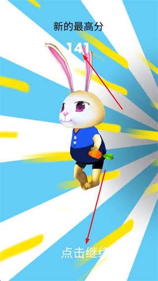 3、结束奔跑后会显示新的最高分,点击点击继续按钮,进入结算界面。