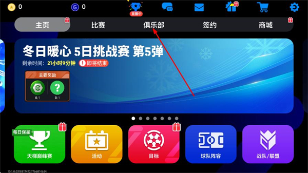 1、在游戏主界面,点击顶部导航栏的俱乐部选项,进入俱乐部页面。