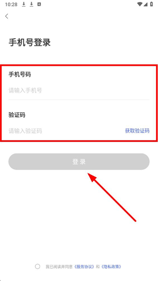 4、在手机号码栏输入对应号码,勾选同意协议后,获取验证码,点击登录即可完成账号登录。