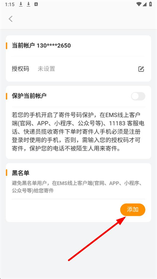 邮政EMS怎么添加黑名单号码