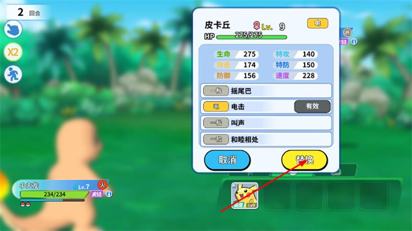 4、完成确认后,战斗界面会切换为选中的精灵,该精灵将参与后续战斗。