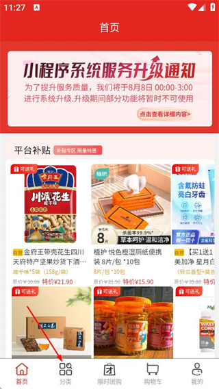 2、在分类页面,点击目标商品,可进入该商品的详情页面。