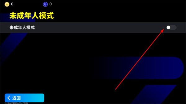 3、在游戏设置界面点击未成年人模式选项,进入未成年人模式设置页面。