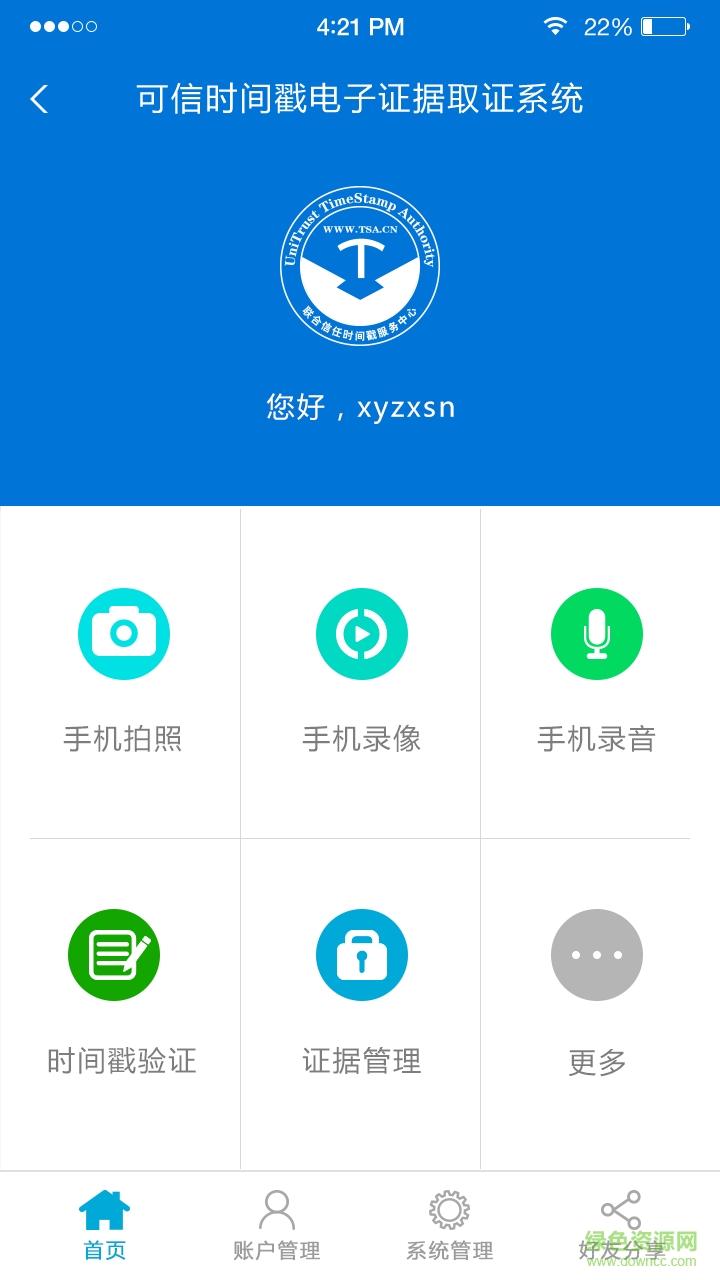 可信时间戳电子证据取证系统app是一款便捷实用的电子取证软件。本软件可以应用于会议记录、事故现场、纠纷取证等情景!支持手机录音、拍照、摄像操作。为用户提供及时有效、具有法律效应的数据信息。欢迎用户在绿色资源网下载使用!