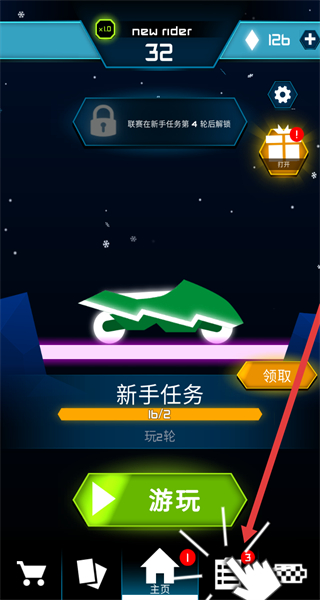 1、在新手任务界面,点击游玩按钮,开启新手任务的第1轮挑战,进入摩托竞速关卡。