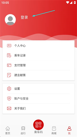3、在个人页面找到登录标识,点击该标识进入温州轨道的账号登录页面。