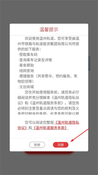 1、阅读弹出的温馨提示内容,了解服务条款后,点击同意按钮进入APP主界面。