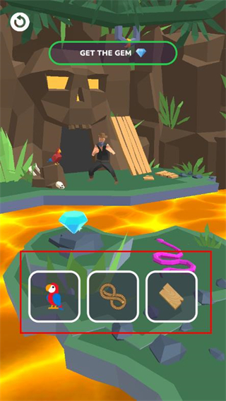 3、在关卡中,选择底部的对应道具,利用道具解决场景障碍,获取宝石完成关卡目标。