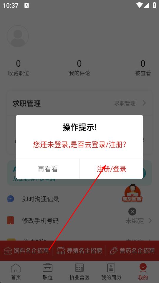 4、在求职者登录页面,输入手机号,输入验证码,勾选我已阅读并同意用户协议和隐私政策,点击注册/登录。