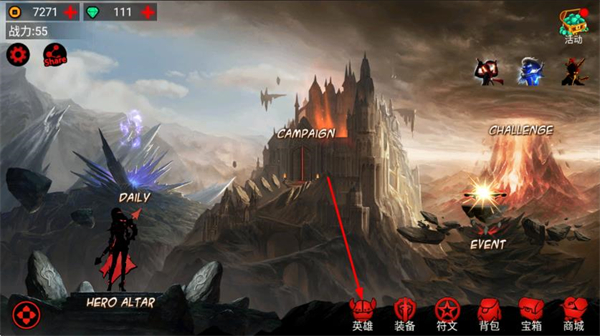 1、在游戏主界面点击底部的英雄按钮,进入英雄选择界面。