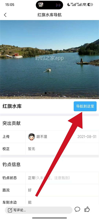 4、在钓点详情页点击导航到这里,即可启动导航前往该野钓地点。