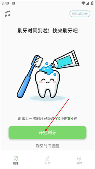 1、在刷牙页面,点击开始刷牙的按钮,进入登录相关界面。