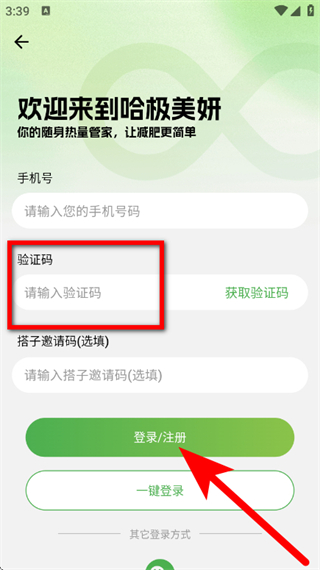 4、在输入框,输入验证码,点击登录注册,完成注册。